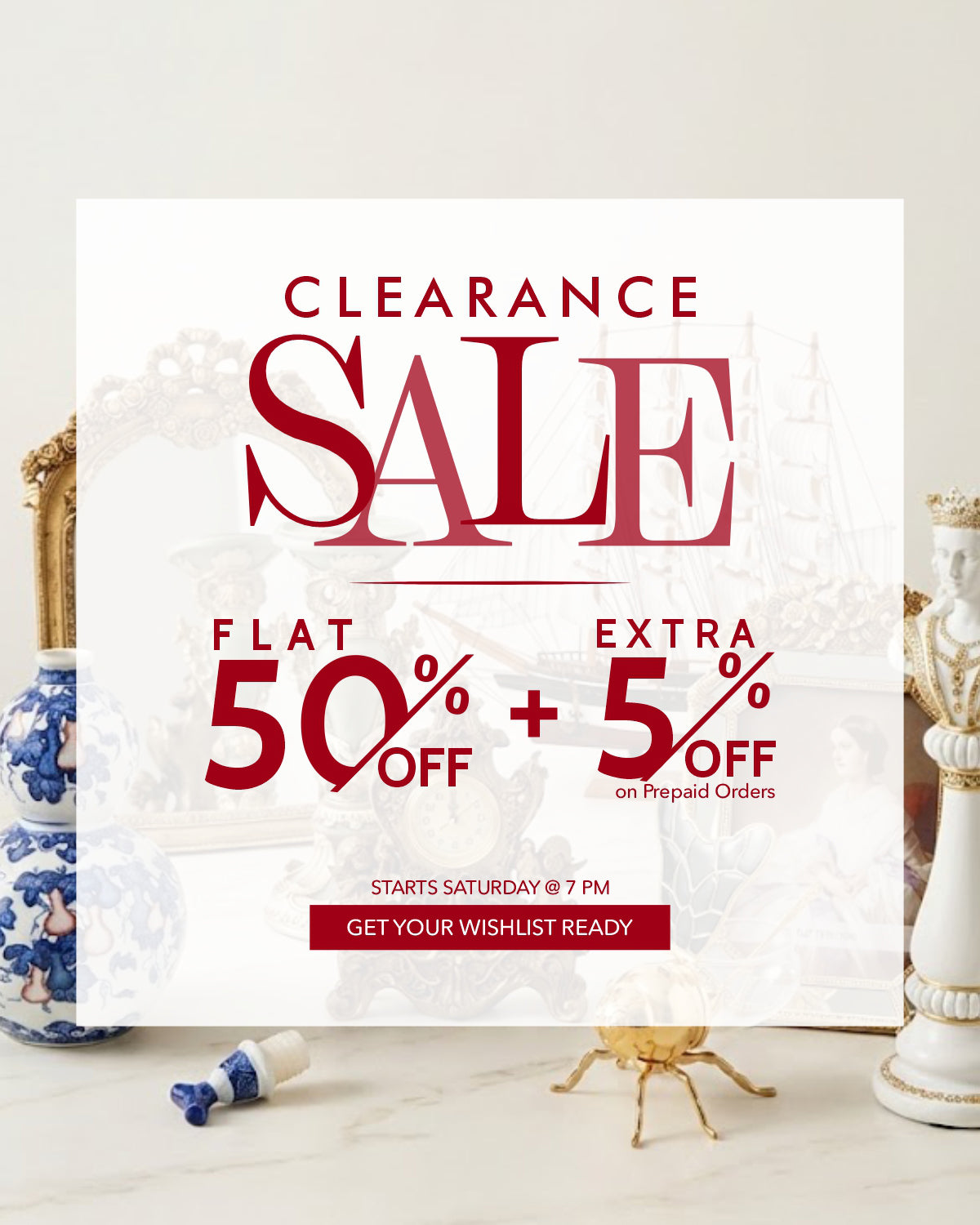 Our Clearance Sale Flat 50% Off starts today @ 7 pm