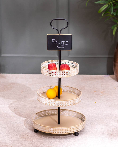 The Farmhouse Colonial Three-Tier Stand: a practical and charming display, with a handy chalkboard sign, perfect for organising and not only for presenting cakes but also fruits or pastries with rustic flair.