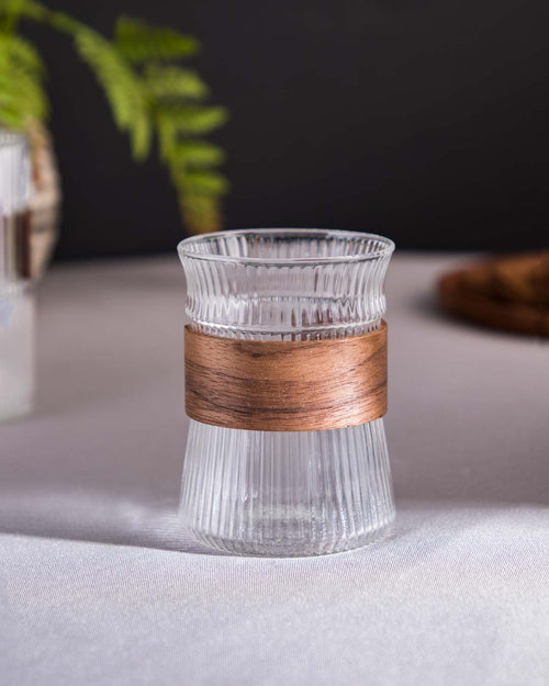 The Tumblers Retro Crystal Glass: a clear, ridged design cinched with a copper band, blending modern clarity with a touch of vintage charm.