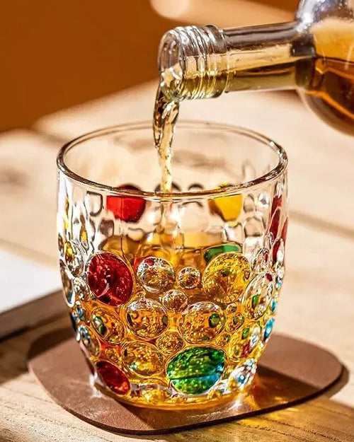 The 'Bubble Bliss' Embossed Glasses: a set that dazzles with vibrant, jewel-like bubbles, perfect for adding a splash of colour to your favourite beverages.