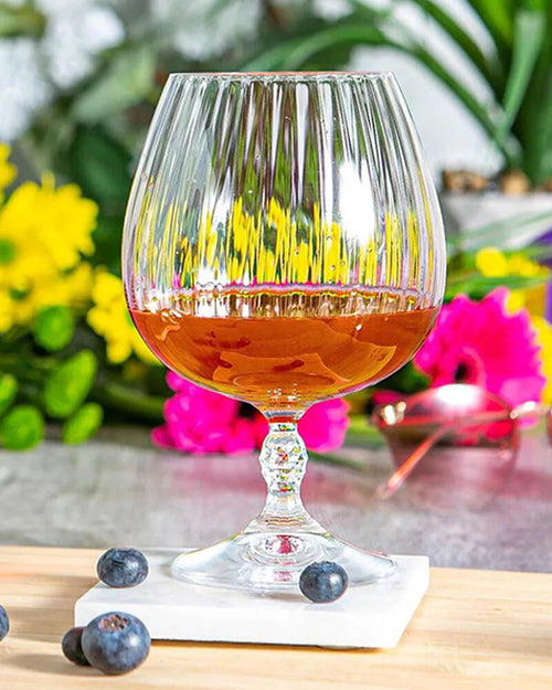 The Bormioli Rocco America '20s Cognac Glasses: a set of six, capturing the spirit of a bygone era with their elegant ridges and robust stems, perfect for a refined sipping experience.