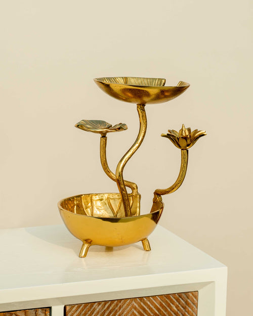 Golden Lotus Jewellery Holder: A golden lotus jewellery holder, beautifully sculpted to offer a serene and stylish organisation solution for your cherished adornments.