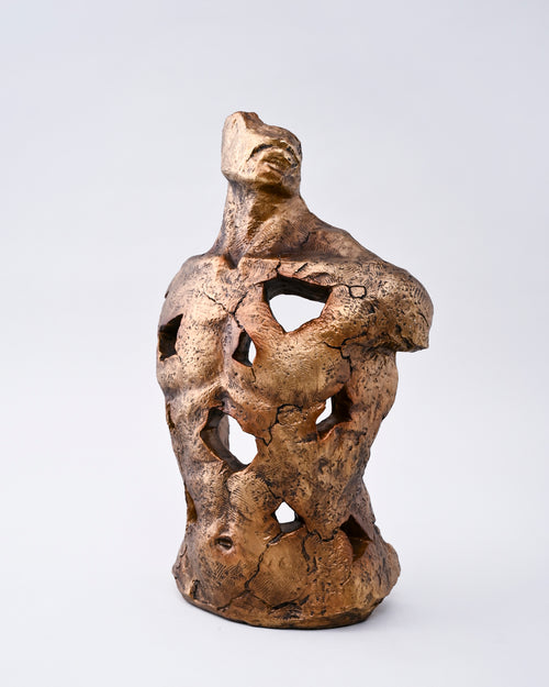 A striking artistic sculpture of a men torso, crafted with a distressed bronze finish and intricate hollow details. This abstract design captures both strength and vulnerability, symbolizing timeless beauty and resilience. Perfect as a statement décor piece for modern, contemporary, or art-inspired interiors.