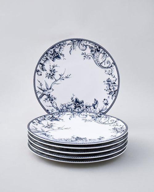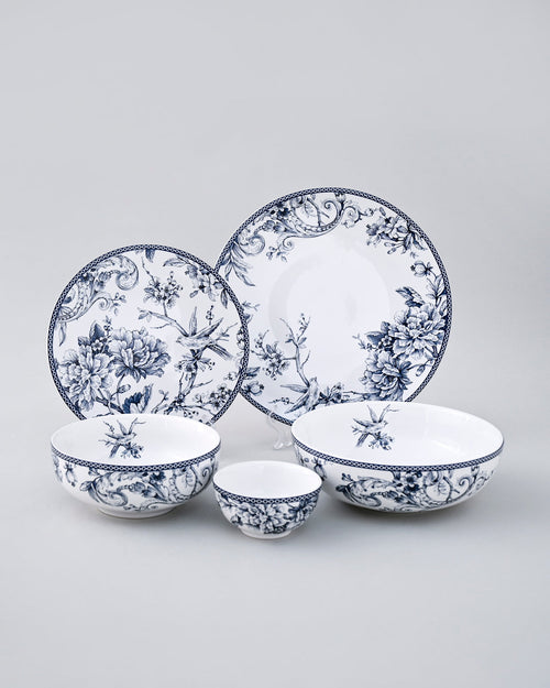 The Adelaide Blue Dinner Set exudes timeless elegance with its intricate blue floral and vine motifs set against a pristine white background. Inspired by classic European porcelain artistry, this set combines traditional charm with modern durability.