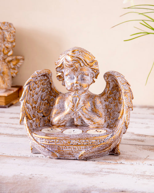 This charming Adorable Angel Cherub Candle Stand is a beautiful addition to any home decor. Crafted with intricate details and a high-quality finish, it adds a touch of elegance to your space. With its sturdy design and adjustable height, it is perfect for holding candles of any size. Bring a warm and heavenly ambiance to any room with this delightful piece.