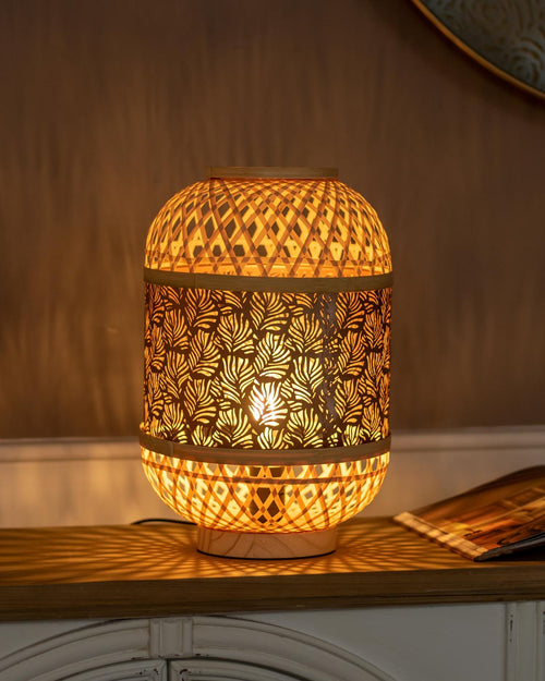 Alinafe Ambient Lamp - Brown is a Nordic-style addition to your living room. Its metal and wood construction including a round base and cylindrical rattan shade creates a cozy atmosphere, perfect for unwinding. The open top of the shade lets natural light pass through, rendering the warmth of the bulb. It supports one 25W E14 bulb, recommended to be either warm white or soft yellow for a gentle ambiance.