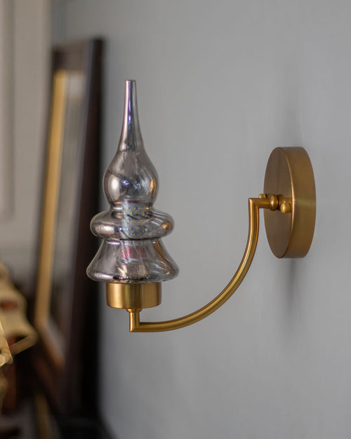 Add a touch of modern sophistication to your home with this single light wall sconce. This wall sconce features a brushed brass finish and a grey glass shade.