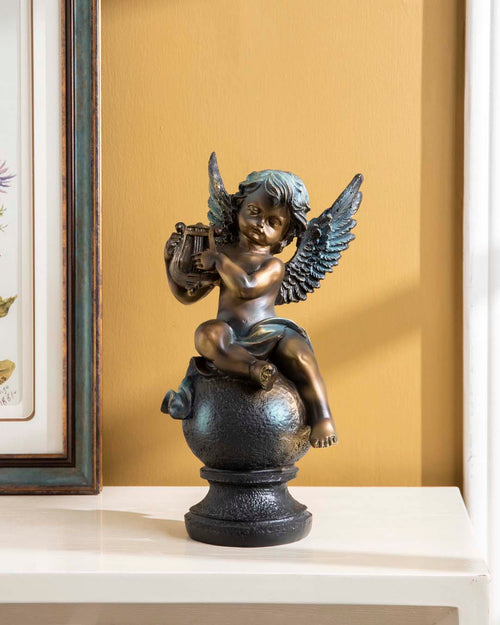 This exquisite Angel Cherub figurine, crafted from high-quality resin, showcases an angelic figure gracefully playing the harp. Perfect for art and music lovers, this piece adds a touch of elegance and beauty to any space. Expertly crafted, this figurine captures the essence of celestial music with its intricate details and delicate design.