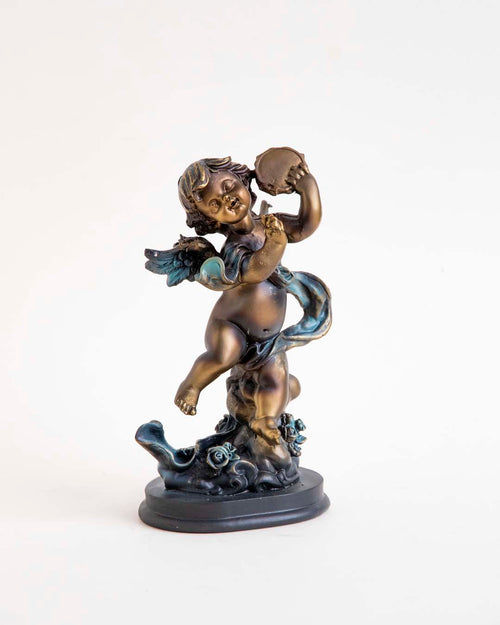 This exquisite Angel Cherub figurine, crafted from high-quality resin, showcases an angelic figure gracefully playing the tambourine. Perfect for art and music lovers, this piece adds a touch of elegance and beauty to any space. Expertly crafted, this figurine captures the essence of celestial music with its intricate details and delicate design.