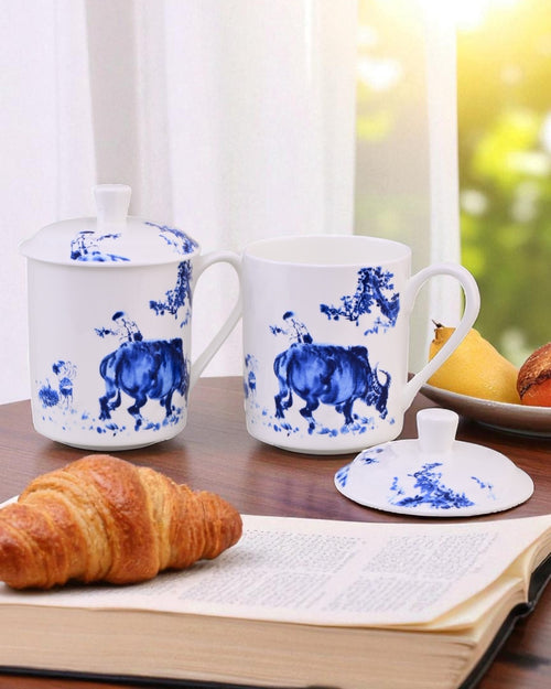 'Artistic Blue Bull' Fine Bone China Mug