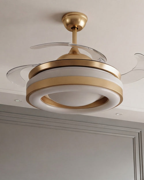 Aura Ring LED Retractable Ceiling Fan + Chandelier Light (with Remote Control)