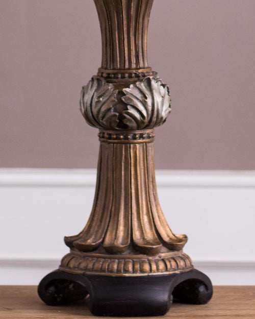 Aurelian Table Lamp features a finely sculpted antique-finish metal base with a clean pleated fabric shade. Its tall, elegant form adds a premium, hotel-like luxury to bedrooms, living rooms, and side tables while giving soft, comfortable lighting.