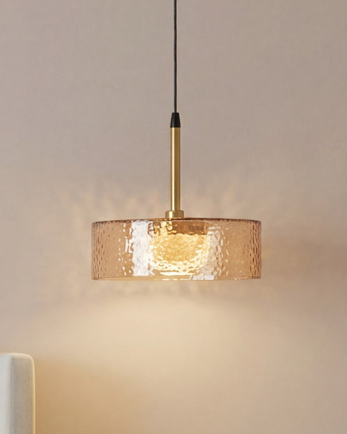 The Aurexa Halo Pendant Light features a broad crystal-textured ring shade surrounding a warm glowing core, finished with refined gold detailing. Its soft, radiant light creates an elegant focal point for dining areas, lounges, and modern living spaces, adding a touch of luxury without feeling heavy.