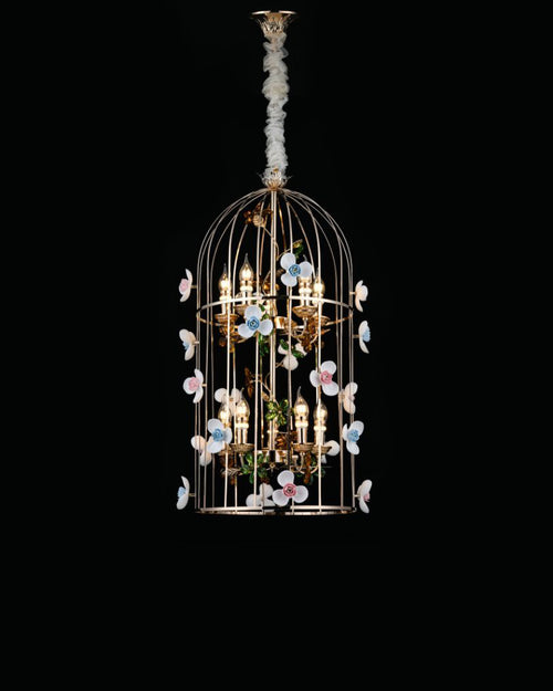 This Birdcage Floral Pendant Light is the perfect addition to any room. With a beautiful birdcage design and delicate floral accents, it adds a touch of elegance and charm to your home decor. The light's unique design allows for ample lighting while still maintaining a captivating aesthetic. Crafted with high quality materials, it is a durable and stylish choice for your lighting needs.