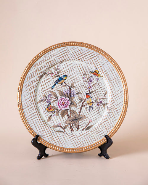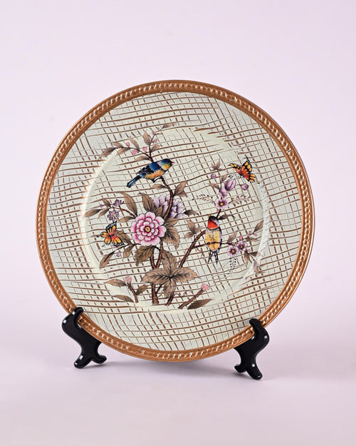 This decorative plate features a beautifully detailed flower design inspired by the elegance of nature. The intricate floral patterns are rendered in soft, earthy tones, evoking a sense of tranquility and natural beauty.