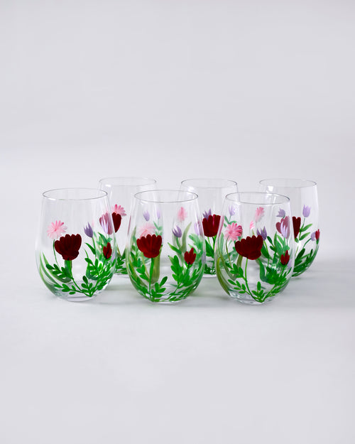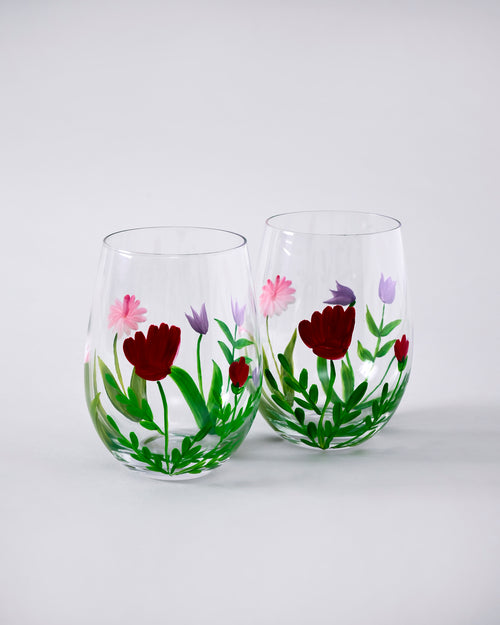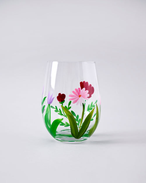 A beautifully crafted glass featuring elegant hand-painted floral patterns that add a refreshing charm to any setting. Its smooth, curved silhouette offers a comfortable grip while showcasing intricate artwork that brings a touch of nature and sophistication to your table décor perfect for everyday use or special occasions.