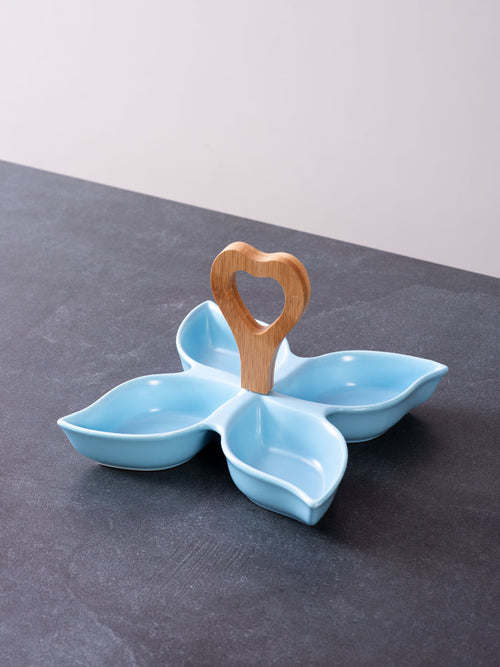 Now serve a variety of options easily at your next get together without the hassle of excessive cleaning. The exquisite platter has 4 compartments and a mesmerising handle which compliments the platter's look and also helps in its easy mobility.