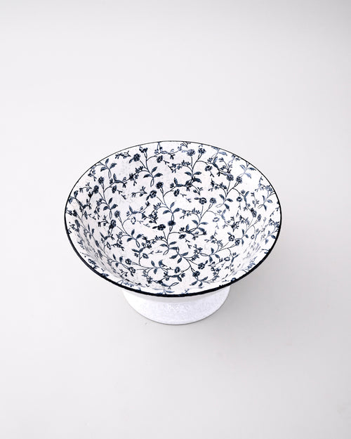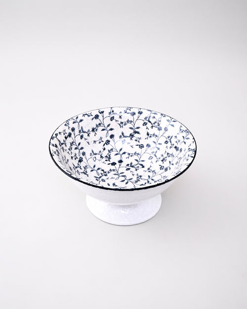 The Blue Blossom Footed Ceramic Bowl blends timeless elegance with floral charm. Featuring a classic pedestal base and a blue botanical pattern on a crisp white glaze, it exudes sophistication and grace.