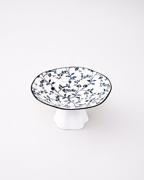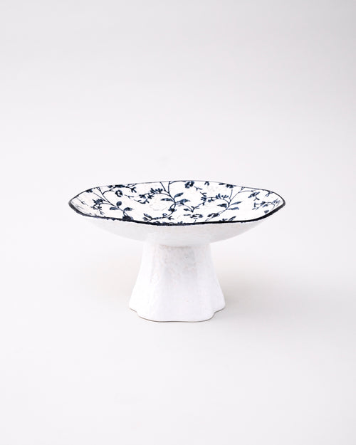 The Blue Blossom Pedestal Desert Bowl blends timeless elegance with floral charm. Featuring a classic pedestal base and a blue botanical pattern on a crisp white glaze, it exudes sophistication and grace.