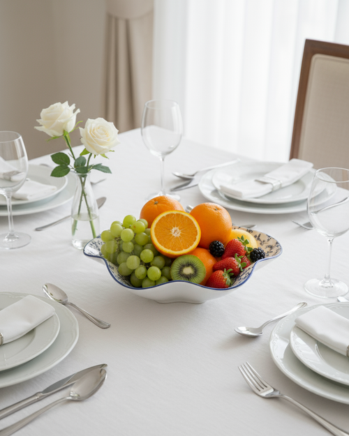 Perfect as a centerpiece for dining tables or for serving fruits, snacks, or salads, this bowl blends traditional design with modern aesthetics, adding a serene and graceful touch to your décor.