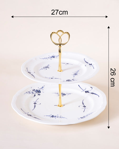 Use these dainty cake stands to serve your favourite desserts and hors-d'oeuvres. Our 2-tier cake stand adds a touch of elegance to any occasion, from an elegant dinner to a casual gathering. Perfect for desserts, pastries, and finger foods. This classic accessory gives your tabletop the ideal presentation at your next party.