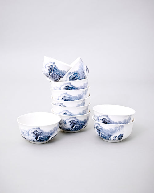 This elegant hand-painted porcelain katori features a beautiful mountain-inspired watercolor design, adding a touch of artistry to your dining experience. Crafted from high-quality ceramic, these bowls are perfect for serving curries, desserts, soups, or snacks.