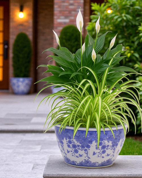 The Blue & White Blossom Harmony Planter showcases timeless craftsmanship with its intricate floral and vine motifs. Perfect for bonsai, succulents, or decorative plants, this planter adds a graceful charm to your home décor. Its classic blue-and-white palette complements both traditional and modern interiors, making it a versatile accent piece.