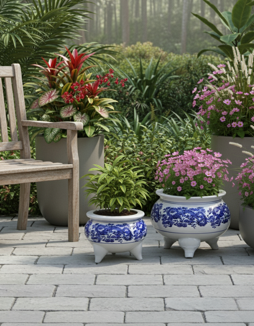 Perfect for showcasing indoor plants, bonsai, or floral arrangements, it also serves as a decorative accent piece that enhances the beauty of any living space, patio, or garden setting. Its classic oriental artistry brings a touch of sophistication and cultural richness to your décor.