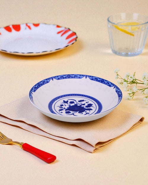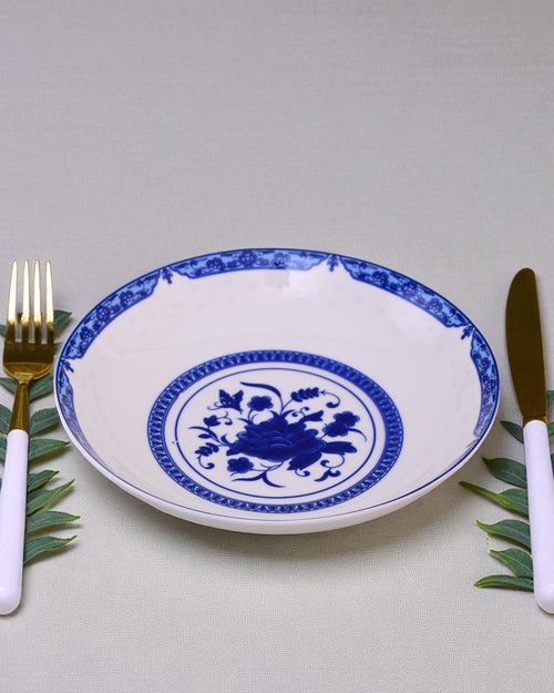 Featuring royal blue hand-painted floral patterns, this pasta plate blends heritage design with modern elegance. Perfect for pasta, risotto, salads, and festive dining, it makes every meal look royal and inviting.