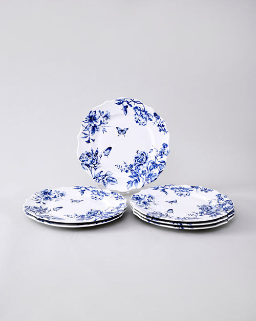 Blue & White Floral Elegance Dinner Plate - Set Of 6