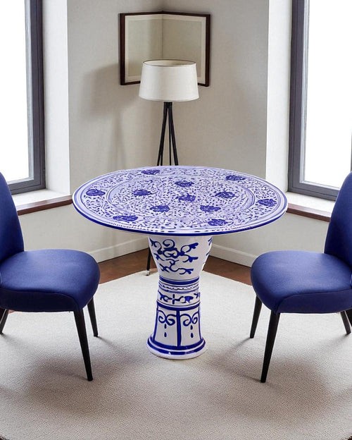 The Heritage Bloom Centerpiece Table is a stunning blend of tradition and artistry, crafted in timeless blue-and-white porcelain. Decorated with delicate floral patterns and elegant motifs, it reflects the charm of heritage design while serving as a functional accent piece.