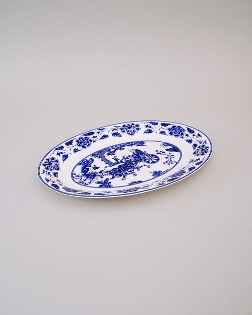 This elegant Blue Willow bone china Platter is adorned with timeless blue-and-white floral and scenic patterns, bringing a touch of classic charm to your dining table. Crafted with fine ceramic, it is perfect for serving appetizers, snacks, or main dishes during family gatherings and festive occasions. Its intricate oriental-inspired design makes it not only a functional serveware piece but also a decorative centerpiece that adds sophistication to any setting. Durable, easy to clean, and stylish, this platter is a must-have for traditional as well as modern homes.