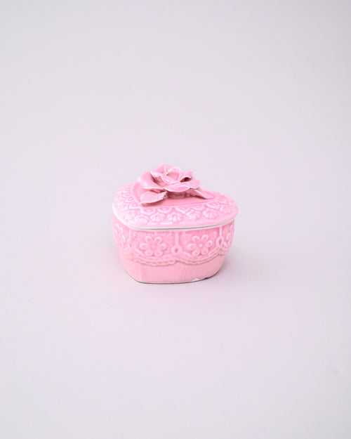 Sweet, delicate, and full of charm — this Blush Pink Heart Trinket Box is a little keepsake of elegance. Designed in a romantic heart shape with a beautifully sculpted rose on the lid, it captures timeless femininity and grace. The intricate floral detailing along the sides adds a handcrafted touch, while the soft pink hue brings warmth and tenderness to any setting.