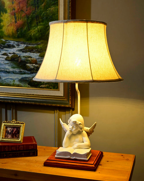 The Book Reading Angel Cherub Table Lamp features a beautifully crafted cherub design that emits a soft, warm light, creating a calming and inviting atmosphere. Perfect for bedrooms or cozy spaces, this lamp combines decorative charm with functional illumination to enhance your home’s ambiance.