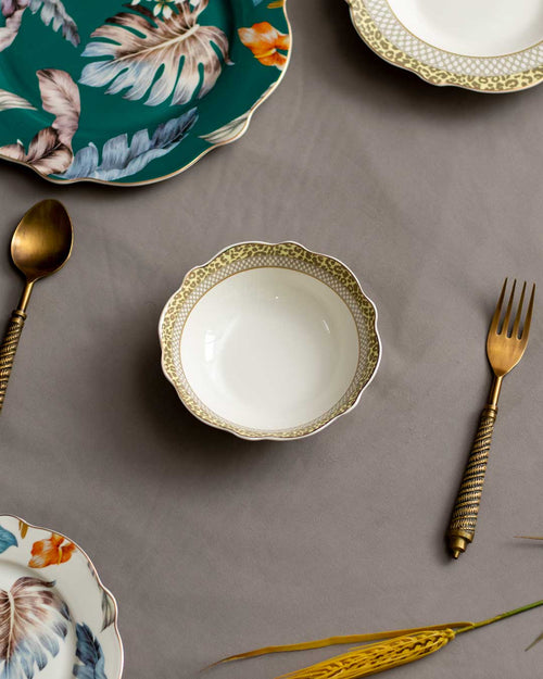 The botanical delight katori is a captivating blend of elegance and nature-inspired design. Crafted with meticulous detail, its delicate botanical patterns showcase the beauty of flora, making it a charming addition to any table setting. This exquisite katori seamlessly combines functionality with aesthetics, offering a delightful dining experience for those who appreciate the finer elements of tableware.