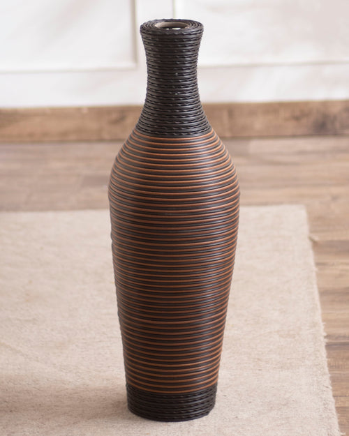 Get creative with your display by adding a long stem arrangement or mix and match with other vases for a unique blend of texture and colour. Create depth and form in your space by displaying this beautifully crafted vase. Appealing brown bohemian vase with a tall, slender structure made for plants with long stems and best arranged in a corner space in an ensemble.