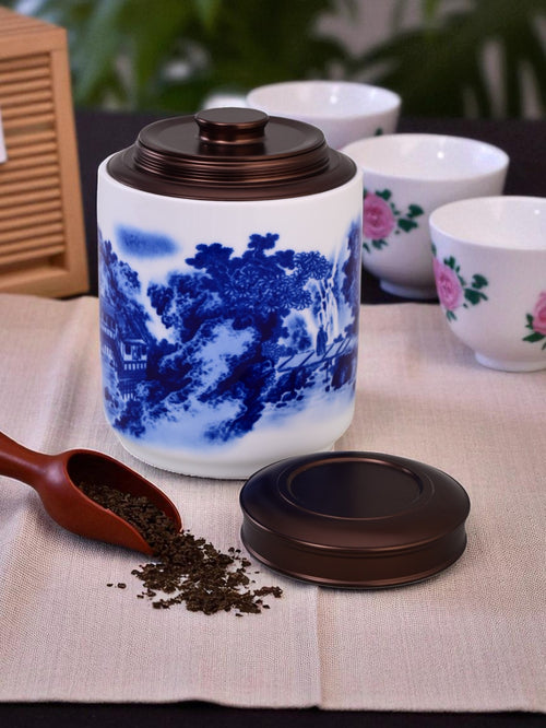 'By the River' Blue & White Porcelain Storage Jar