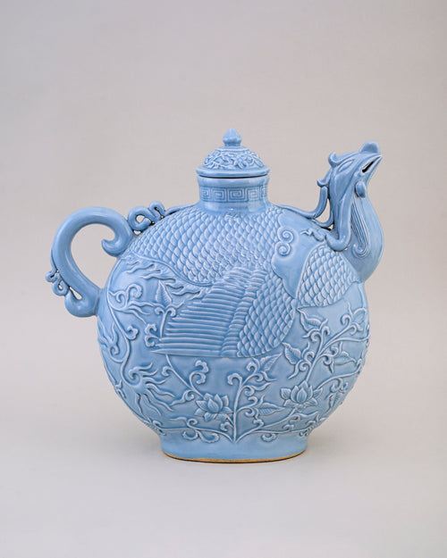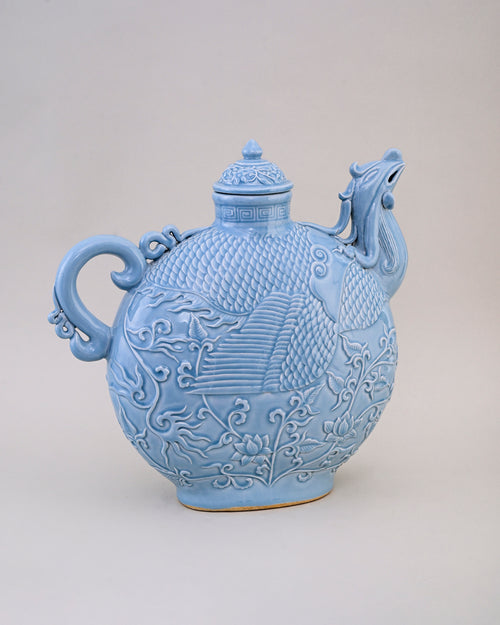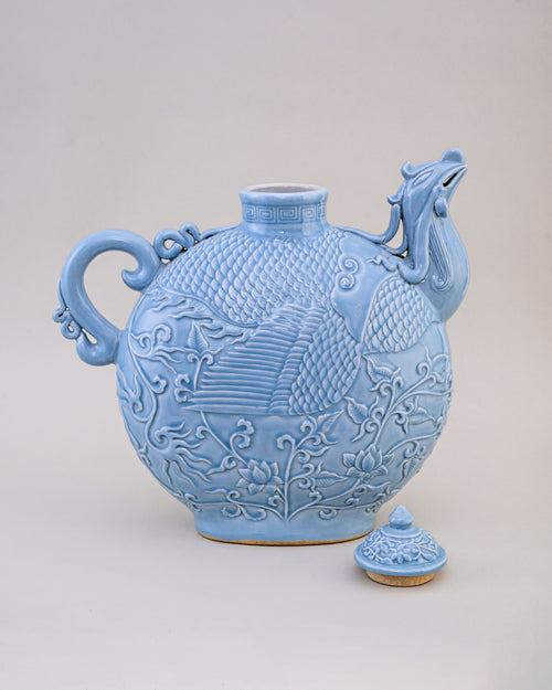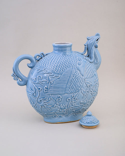 Celestial Blue Celadon Phoenix Lidded Moon Vase