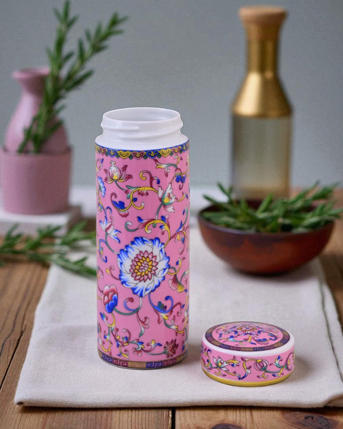 Our vibrant thermos flask with a pattern of inter-twisted branches and chrysanthemum signifies auspiciousness - and is the traditional pattern of the Han dynasty.