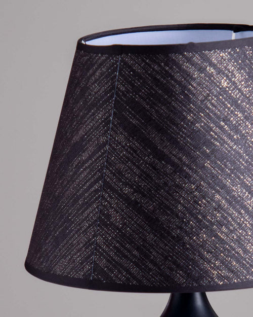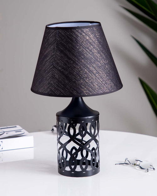 This stylish table lamp features a sleek metal design in a classic black color. It adds a touch of elegance and functionality to any space, perfect for reading or creating a cozy atmosphere.