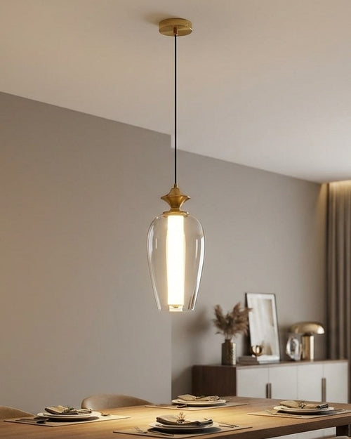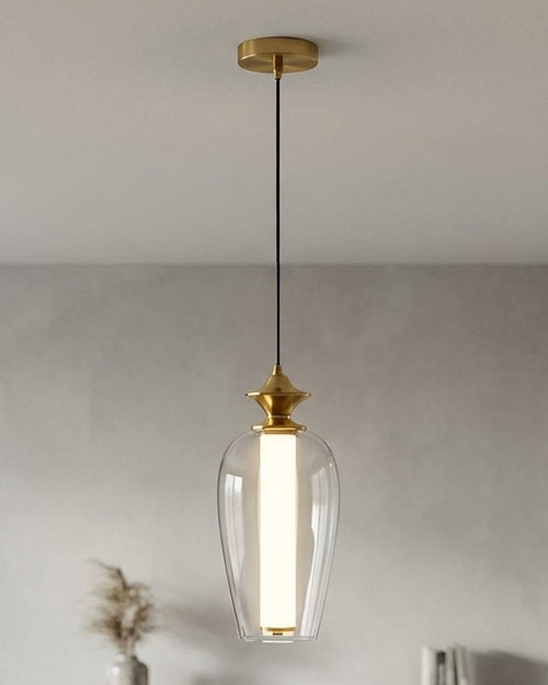 The Smokara Lume Pendant Light features a sleek vertical light core wrapped with a smoked glass form and subtle clear-glass accent ring. Its refined, sculptural silhouette creates a soft, ambient glow—perfect for stairwells, foyers, and modern luxury interiors.