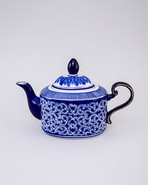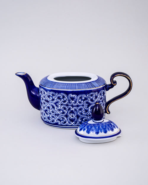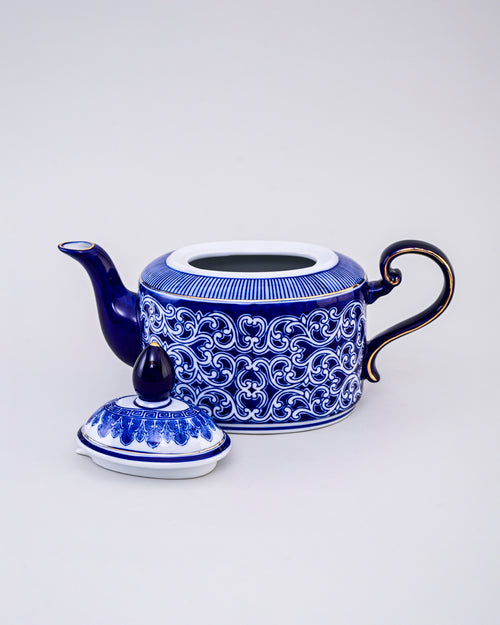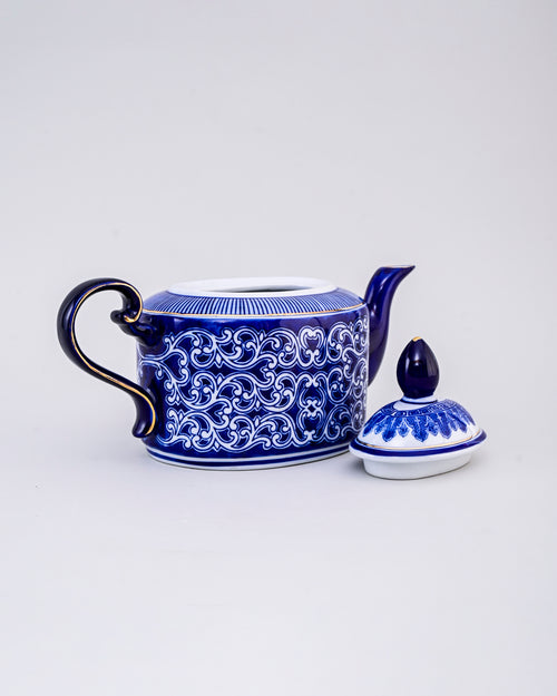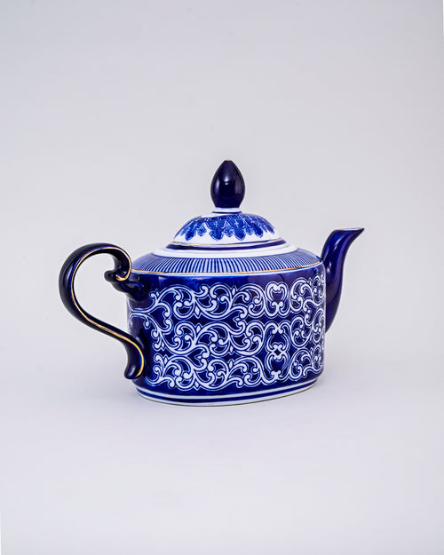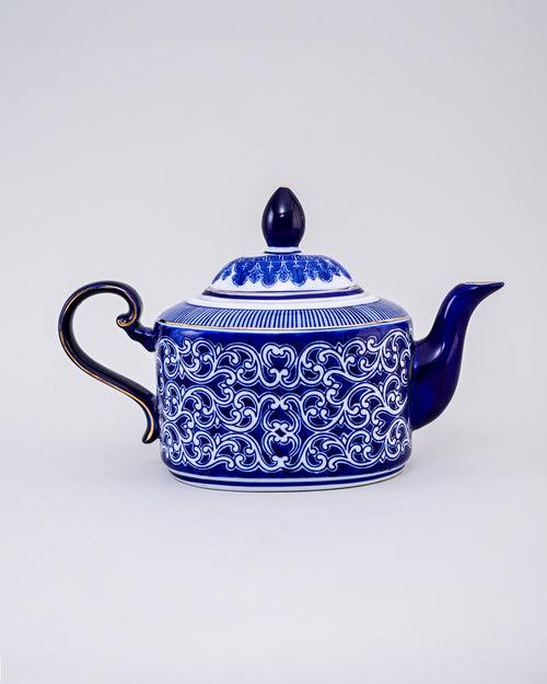 This beautifully crafted Classic Blossom Ceramic Tea Kettle with intricate white floral patterns brings elegance and charm to your tea time. Its unique hand-painted design makes it not just a kettle but also a decorative piece for your dining or kitchen space.