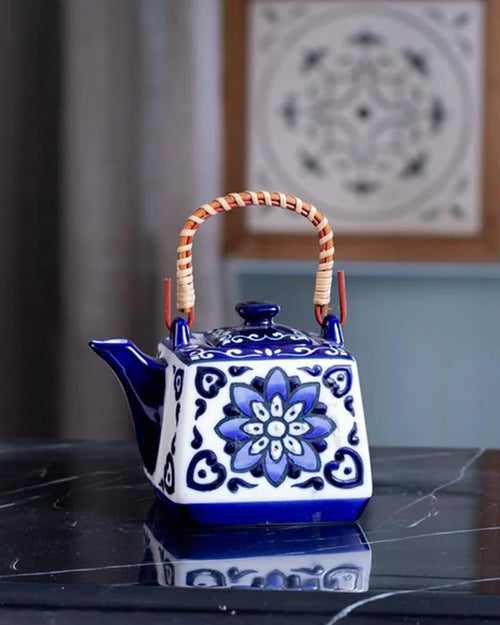 Add timeless elegance to your tea service with this blue-and-white ceramic teapot, gorgeously painted with chinoiserie florals.
