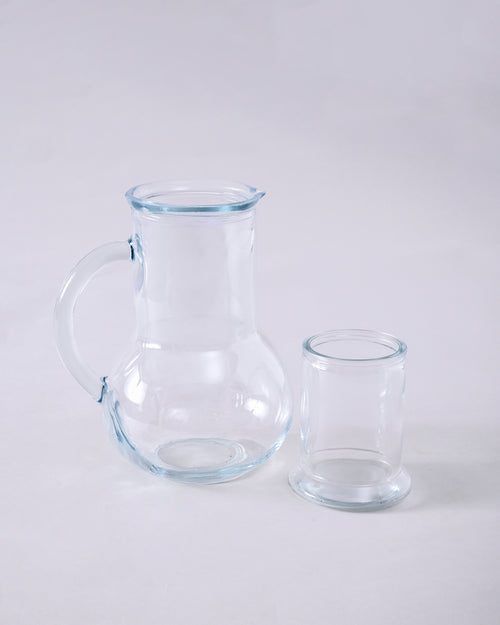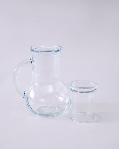 This Clear Glass Jug with Tumbler Lid is a perfect blend of elegance and practicality. Made from high-quality transparent glass, it features a smooth, curved silhouette with a comfortable handle for easy grip and pouring. The included tumbler doubles as a lid, providing a space-saving and hygienic design ideal for keeping beverages fresh. Perfect for water, juice, or bedside use, this versatile set brings a minimalist, modern touch to your kitchen or dining setup.