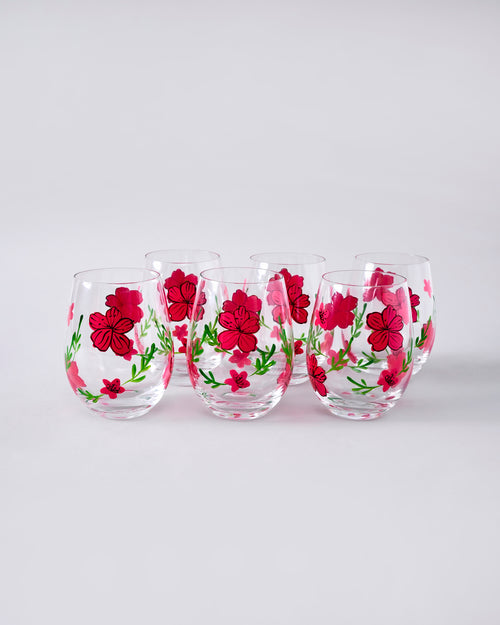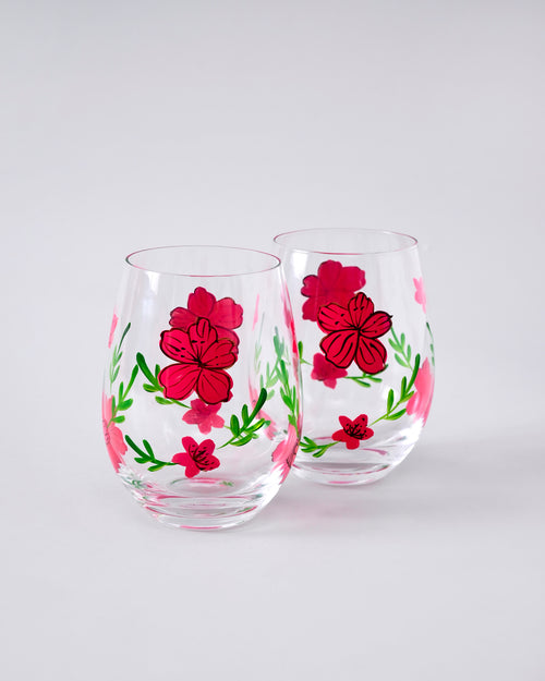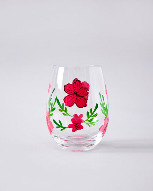 A beautifully crafted glass featuring elegant hand-painted floral patterns that add a refreshing charm to any setting. Its smooth, curved silhouette offers a comfortable grip while showcasing intricate artwork that brings a touch of nature and sophistication to your table décor perfect for everyday use or special occasions.