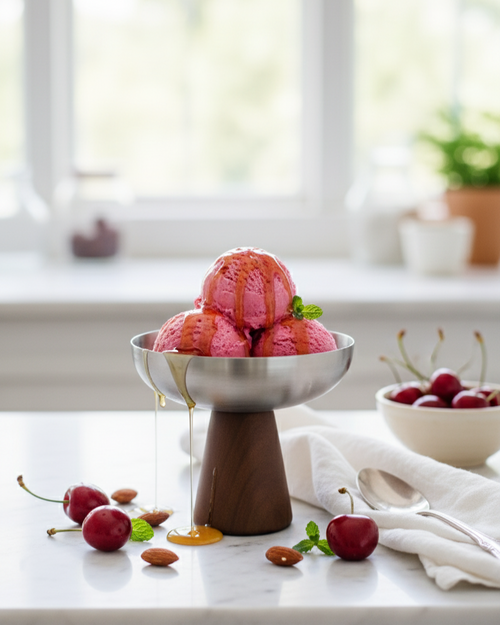 The bowl features a sturdy pedestal base that ensures stability and ease of handling, making it both functional and aesthetically pleasing. Whether you're entertaining guests or enjoying a personal treat, this versatile piece fits effortlessly into any kitchen or dining setting.