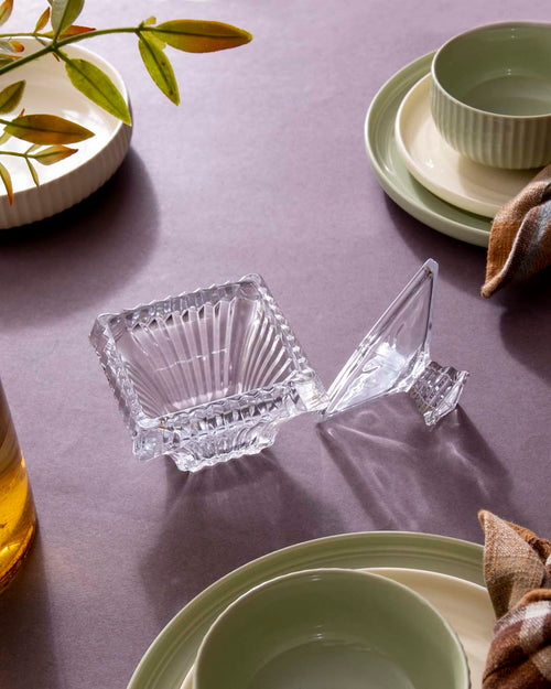 Store your favorite candies in style with our Crystal Cut Candy Jar! The elegant crystal cut design adds a touch of sophistication to any kitchen or dining room. Keep your sweets fresh and easy to access with the included lid. A must-have for any candy lover!