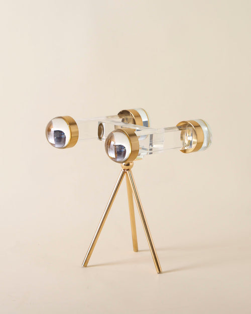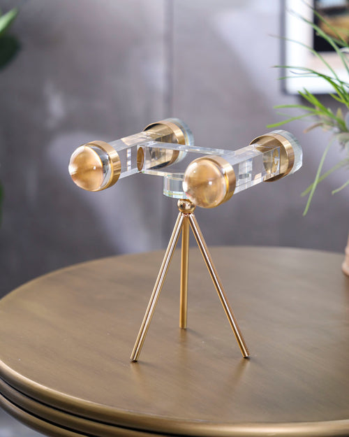 Explore elegance with the Crystal Gold Binocular Decor, a stunning decorative piece inspired by classic binoculars. Crafted from clear crystal with luxurious gold accents, it sits gracefully on a sleek gold tripod stand. This piece adds a sophisticated and adventurous touch to any space, making it ideal for office desks, shelves, or living rooms. Perfect for lovers of travel, exploration, and vintage aesthetics, it serves as a refined statement in modern or classic interiors.