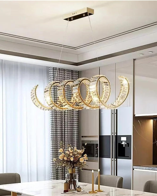 Enhance your space with our exquisite Crystal Wave Ribbon Chandelier. The cascading crystals and unique ribbon design create a stunning visual that adds elegance and sophistication to any room. Crafted with high-quality materials, this chandelier is a beautiful addition to any home or business.