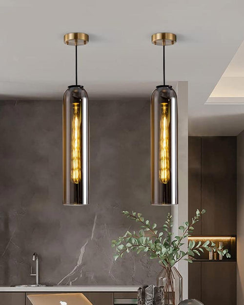 Illuminate your space with the sleek and modern Cylinder Glass Pendant Light. Its cylindrical glass design adds a touch of elegance, while providing ample lighting for any room. Perfect for creating an inviting atmosphere, this pendant light is a must-have for your home.